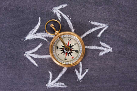 Compass on blur colorful photograph of popular toustist destination background, China traveling concept