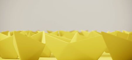 Abstract background for web banner. Yellow origami paper boat on white background. 3d rendering illustration.