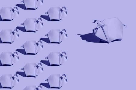 Paper boats of multi-colour. Concept for leadership, teamwork and winning success