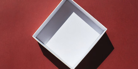 Red and striped open gift box. Multicolored open container for Christmas and New Year gift isolated on white background.