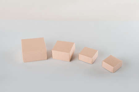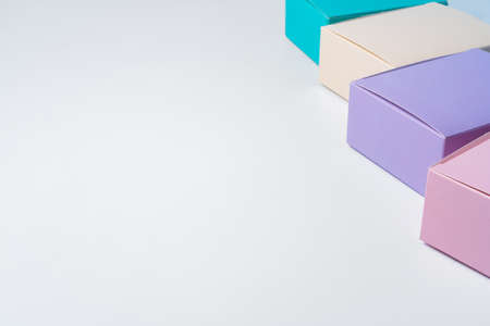 Cardboard boxes on a white background. Ecological packaging of paper products close-up and copy space. Craft containers, packaging, boxes, packages.