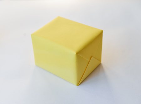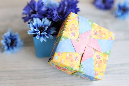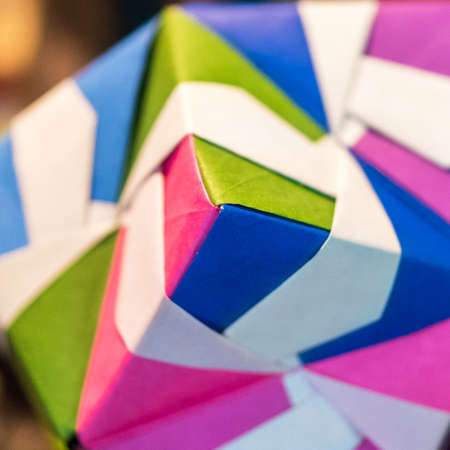 Multicolored cube in origami technique in Kyoto, Japan. Macro.