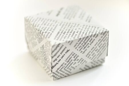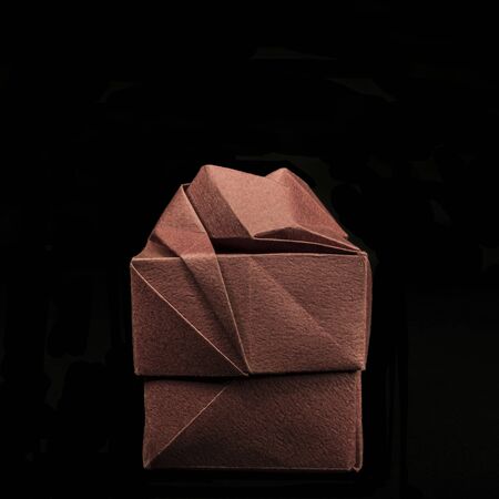 This image features a crumpled brown paper package with a unique folded design, set against a clean white background. Ideal for creative projects and presentations.
