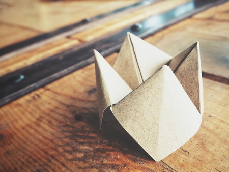 Paper origami rabbit on wooden table. Shallow depth of field.