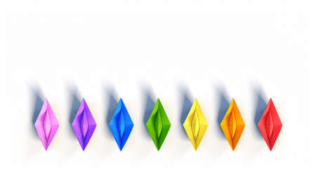 Paper boats of multi-colour. Concept for leadership, teamwork and winning success