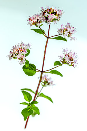 Flowering Oregano isolated on a white background. Fresh herb plant origanum vulgare.