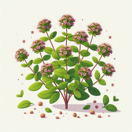 Aromatic plant related to marjoram, with leaves that are used fresh or dried as a culinary herb.