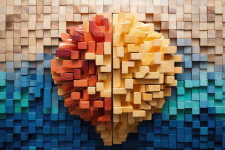 Multi colored wooden blocks form human brain top view flat lay