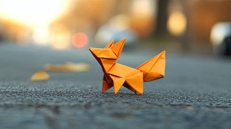 A creative origami fox placed centrally on a smooth surface, surrounded by clear space for a personalized message.