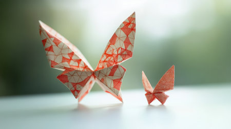 Elegant origami butterfly folded in paper with floral motifs generative ai