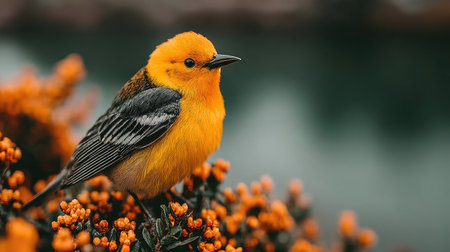 Vibrant Baltimore Oriole Perched on a Tree Branch in Lush Green Environment AI Generative