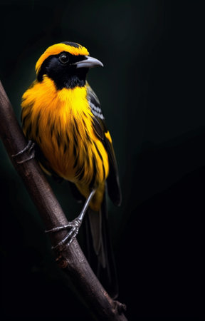 Generative AI : beautiful bird Asian Golden Weaver Ploceus hypoxanthus rest on the branch in nature