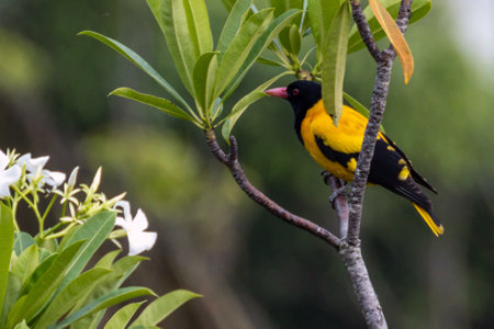 A black hooded Oriole in Sri Lanka. High quality photo from a beautiful bird.
