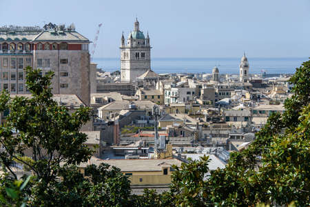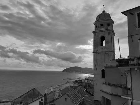 An amazing caption of the sunset in winter days over the sea of Genova with beautiful red sky and some amazing clouds in the background