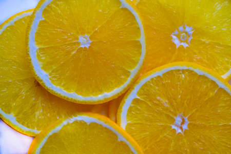 Slices of lemon and orange as background, top view. Citrus fruit. generated by AI