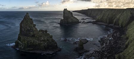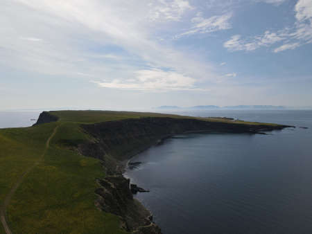 View from above of the magnificent scenery of the sea bay and the high rocky coastline. Dunnet Head, Scotland