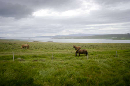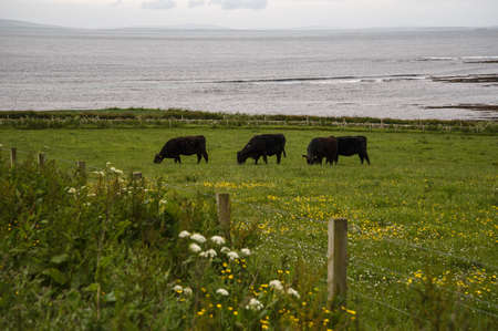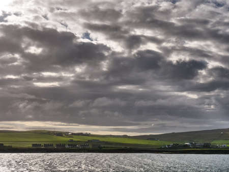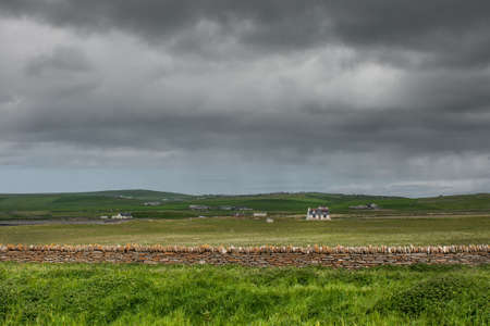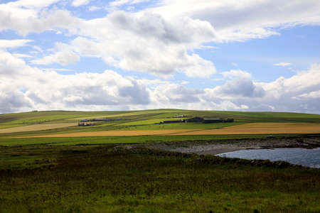 Orkney (Scotland), UK - August 07, 2018: The country landscape in the middle of Orkney's island, Scotland, Highlands, United Kingdom