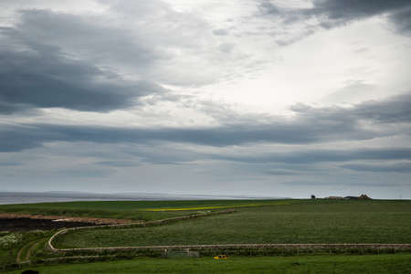 View of countryside and coast in the island of South Ronaldsay, Orkney Islands, Scotland, UK