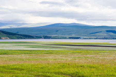 Landscape of valley and reservoir in Georgia, daytime and outdoor