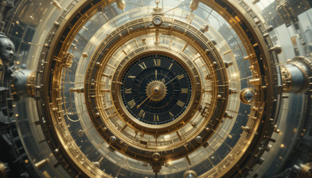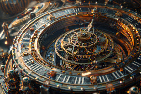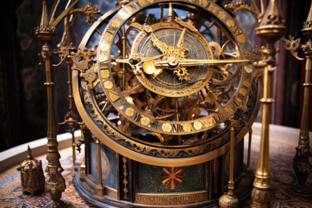 steampunk style astronomical clock mechanism, created with generative ai