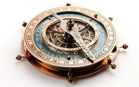 Magic compass with intricate engravings, isolated on white, ideal for fantasy navigation themes