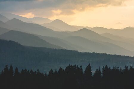 Sunset in the mountains. Beautiful summer landscape. Carpathians, Ukraine