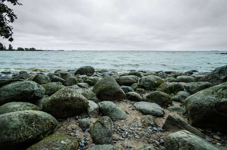The rocky coast of the Baltic Sea in Mersrags in Latvia. Cape Mersrags