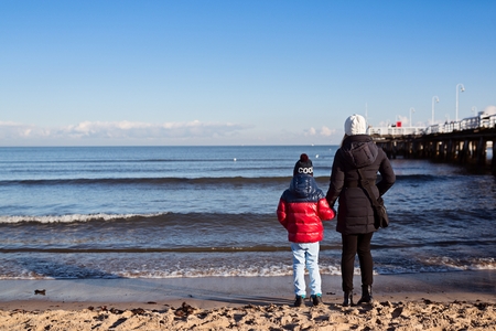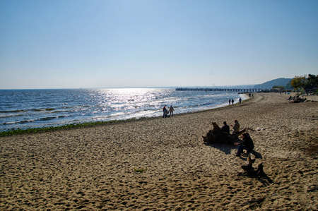 Gdynia Orlowo, Poland, September 30, 2017: Beach in Gdynia Orlowo at Baltic Sea bay in Poland, Europe