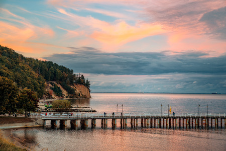 View of the Gdynia pier and the cliffs. Gdynia Orłowo.