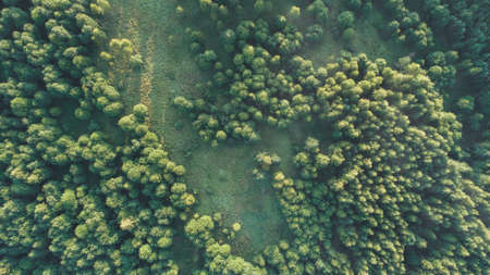 Summer warm sun light forest aerial view as summer background, view from above