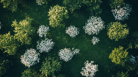High-altitude photography of green forest and nature.