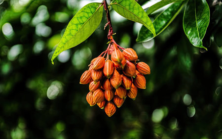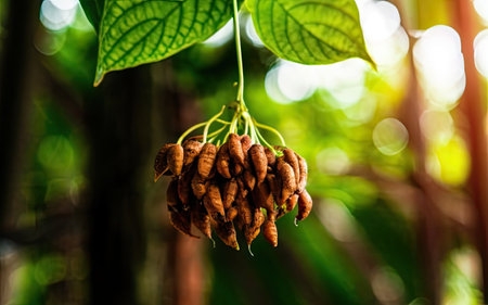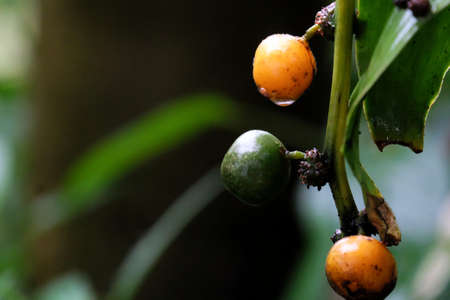 Fruits of yellow vine or Coscinium fenestratum from Western Ghats, endangered species, selective focus