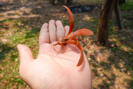 Flying seed on woman hand , Dipterocarpus alatus seed