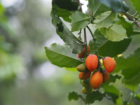 Baccaurea ramiflora Lour or Burmese grape tree , Mafai in Thai, sweet and sour fruit on tree .