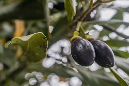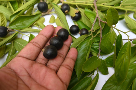 Alangium salvifolium or sage leaved alangium tree fruit. It is is a flowering plant in the Cornaceae family. wildfruit on white background.