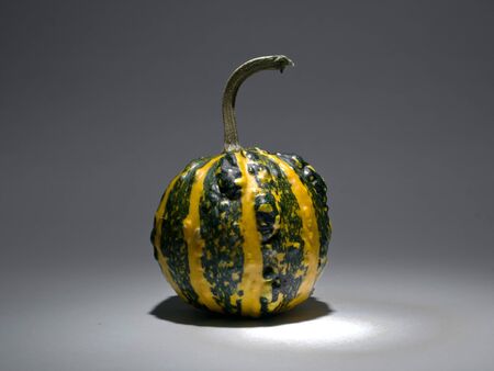 Green and yellow striped small pumpkin