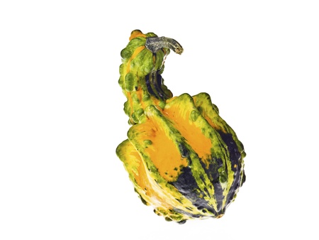 Isolated yellow, (a little green on the bottom), Ornamental Gourd, against a light colored back ground.