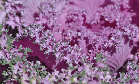 Purple ornamental cabbage close up. Selective focus, shallow depth of field.