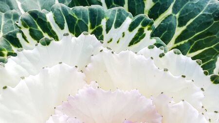 Close up of white peacock kale background, selective focus