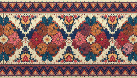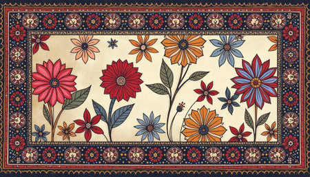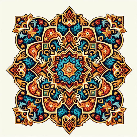 Intricate floral pattern with vibrant colors in symmetric arrangement