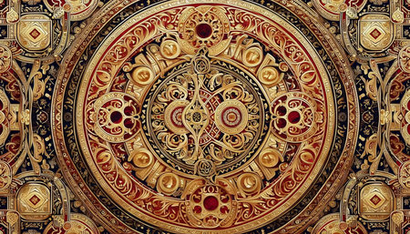Cinematic texture of intricate tribal patterns with rich colors and designs