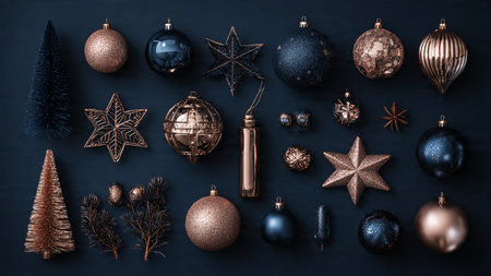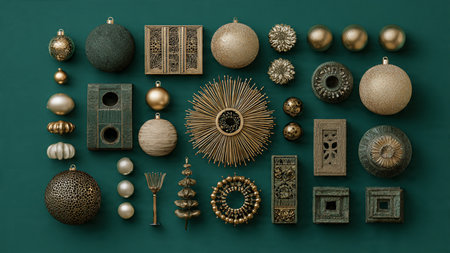 A flat lay arrangement of simple Scandinavian-style Christmas ornaments AI generated illustration