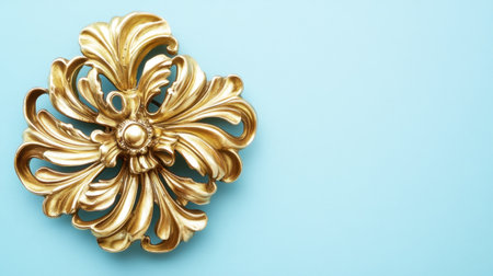 A stunning gold floral decoration resting on a soft blue background, perfect for enhancing any interior space with a touch of elegance and luxury.
