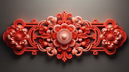 Ornate gold and teal floral pattern on red background. That the image is generated using AI.