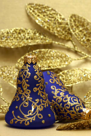 christmas ornaments on a dark blue background with copy space
