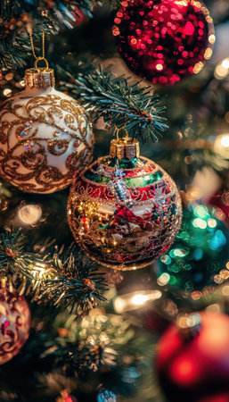 Festive Christmas Tree with Colorful Baubles and Shimmering Lights for Holiday Decoration