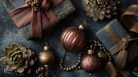New Year decorations close-up, Christmas holiday background, realistic illustration