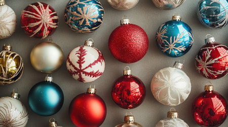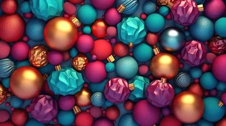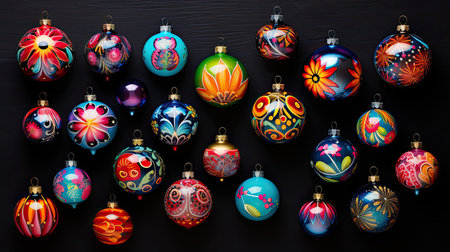 A vibrant array of colorful ornaments each with its own unique design creating a festive and lively pattern