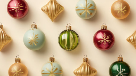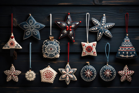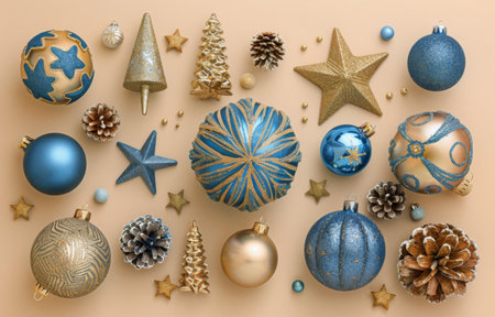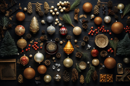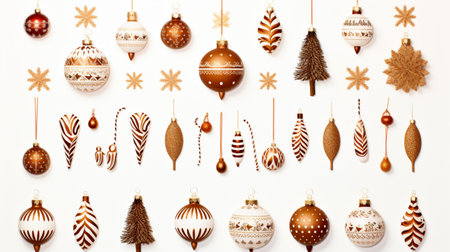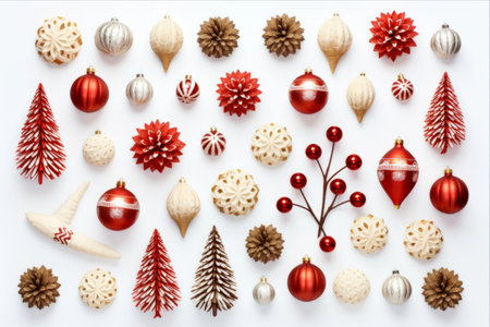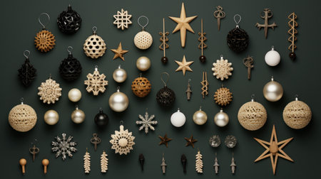 A flat lay arrangement of simple Scandinavian-style Christmas ornaments AI generated illustration
