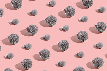 Seamless pattern of Christmas silver balls on pink. Xmas abstract background.